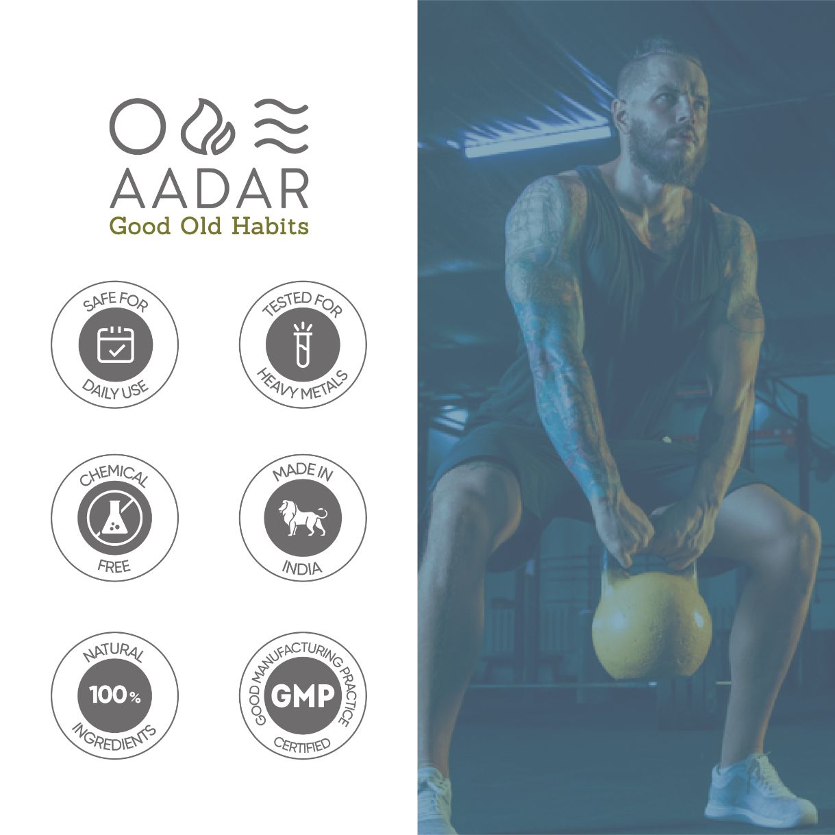 Start your day with more energy, more strength, and more power. AADAR's ayurveda Fitness and Muscle Gain pack helps you build lean muscles, develops your body, and supports good health & nutrition. It is an all-natural Ayurvedic solution that will get your body going in the direction you want without the side effects while giving you a boost of energy and helping fight fatigue.