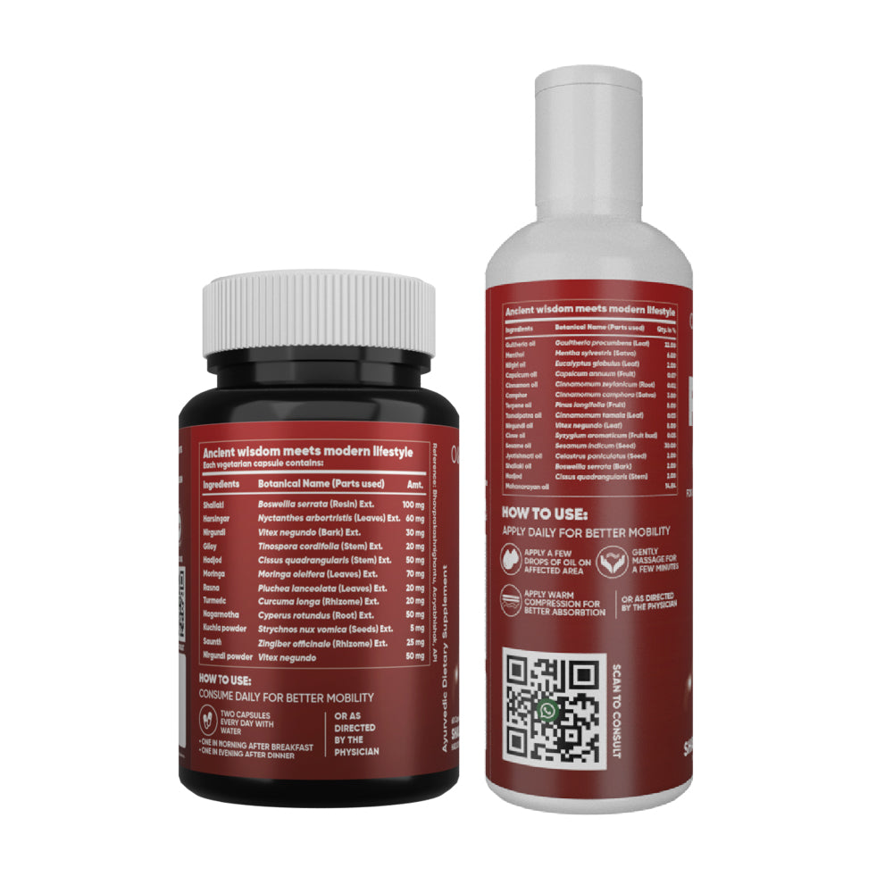 Are you facing difficulty in simple acts of bending over or getting up? These can be signs of worn cartilage, bones, or joints. Don't let the pain keep you from enjoying life, try Ortho Sure Capsule & Oil for joint and muscle pain relief. The Ortho Sure Pain Oil provides you fast and effective joint and muscle pain relief, and on the other hand, the Ortho Sure capsule is a perfect combination of Ayurvedic herbs for the complete cure and care of your joints.
